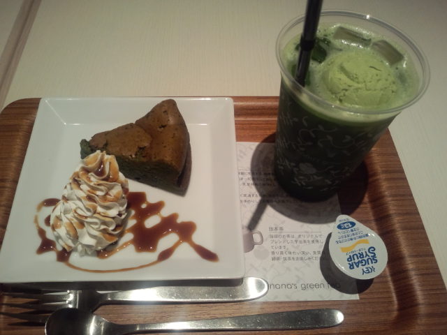 今度はデザート(*´∀`*)抹茶ガトーショコラとグリーンティーフロート!イベント終わった私は自重しない!